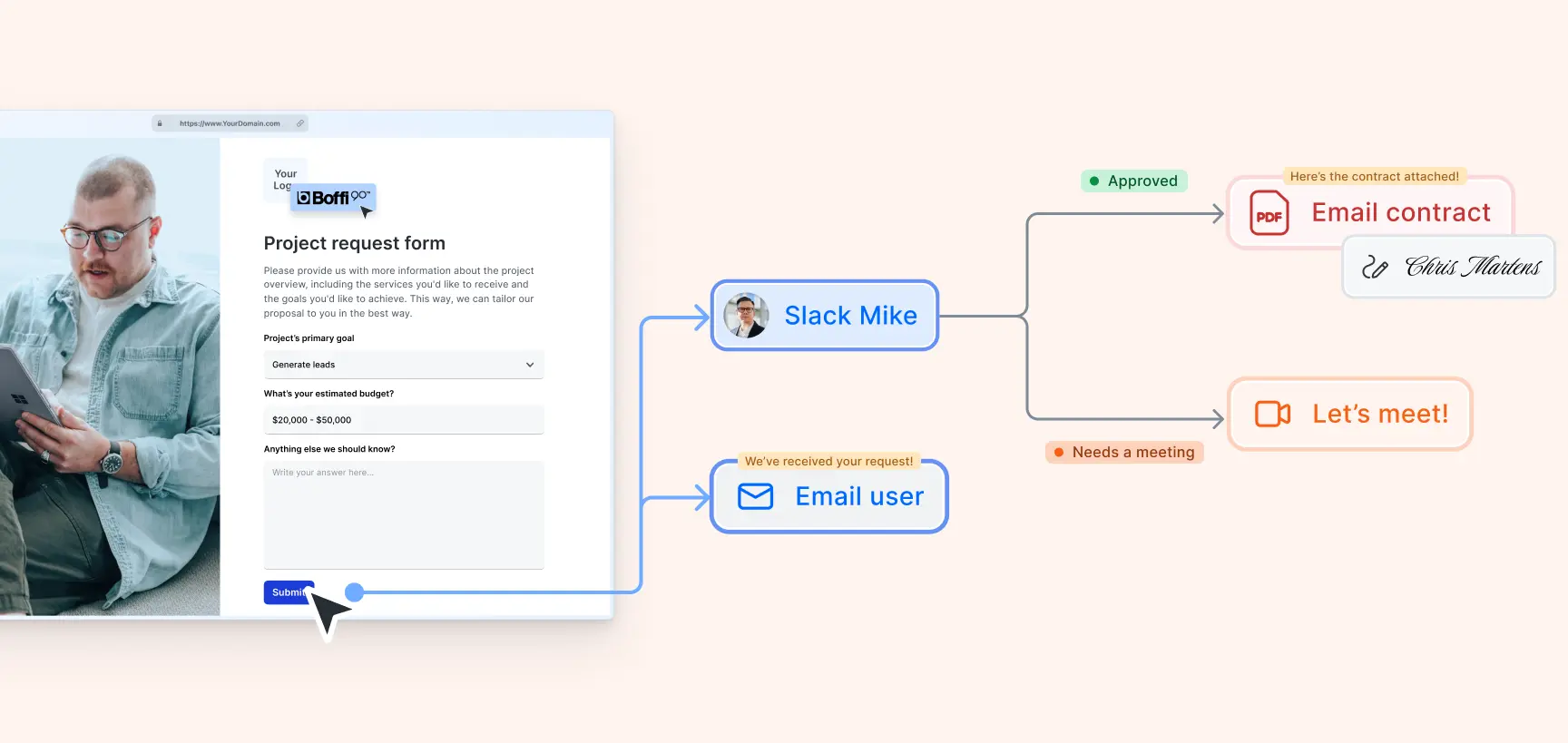 Automate approvals, reports, and workflows with over 5,000 integrations. Link your CRM, payments, and apps in one platform, so your data stays synced, your tasks run themselves, and your team works faster.