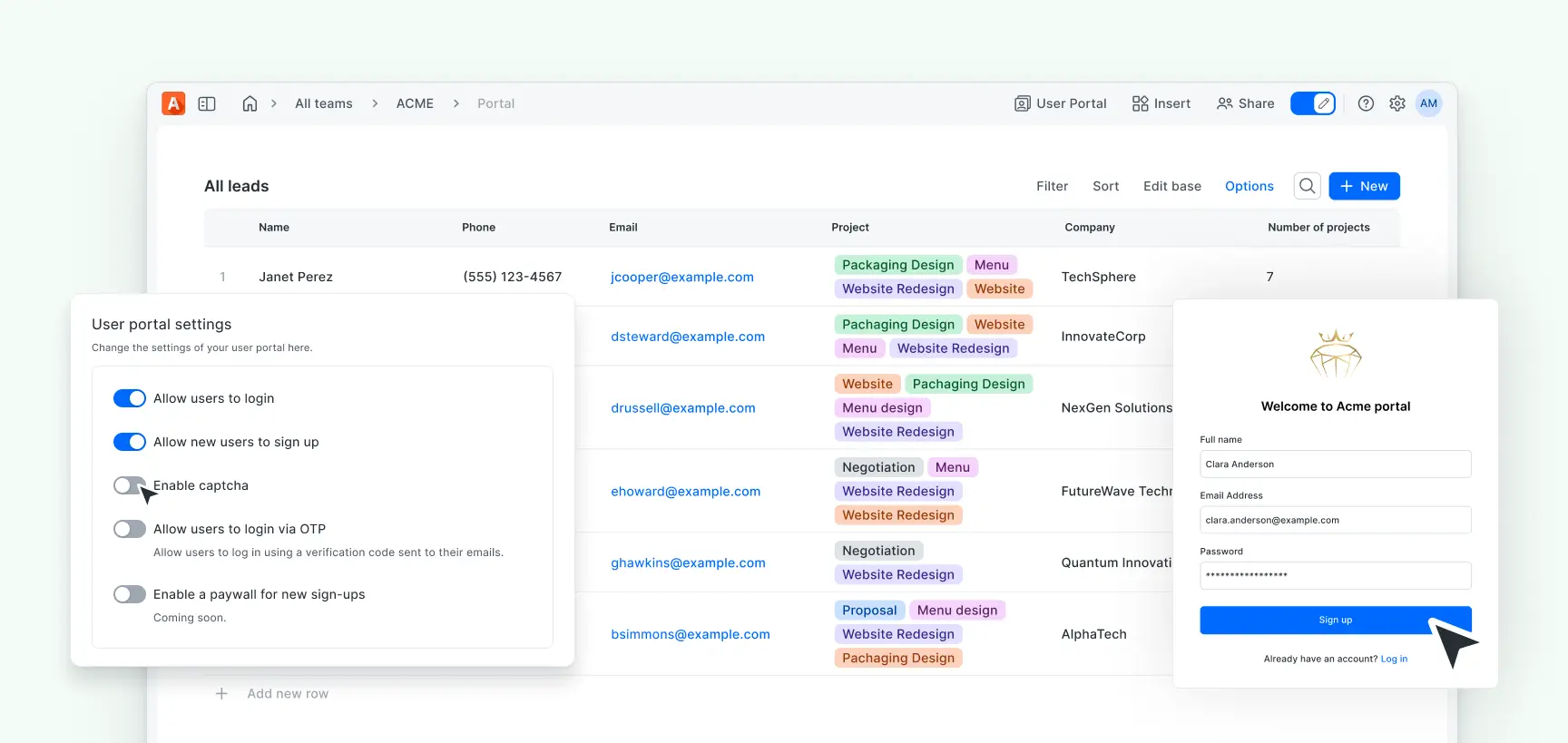 Engage your customers with auto-filled forms, AI-powered documents, and secure client portals, all connected to dashboards and fully under your brand.