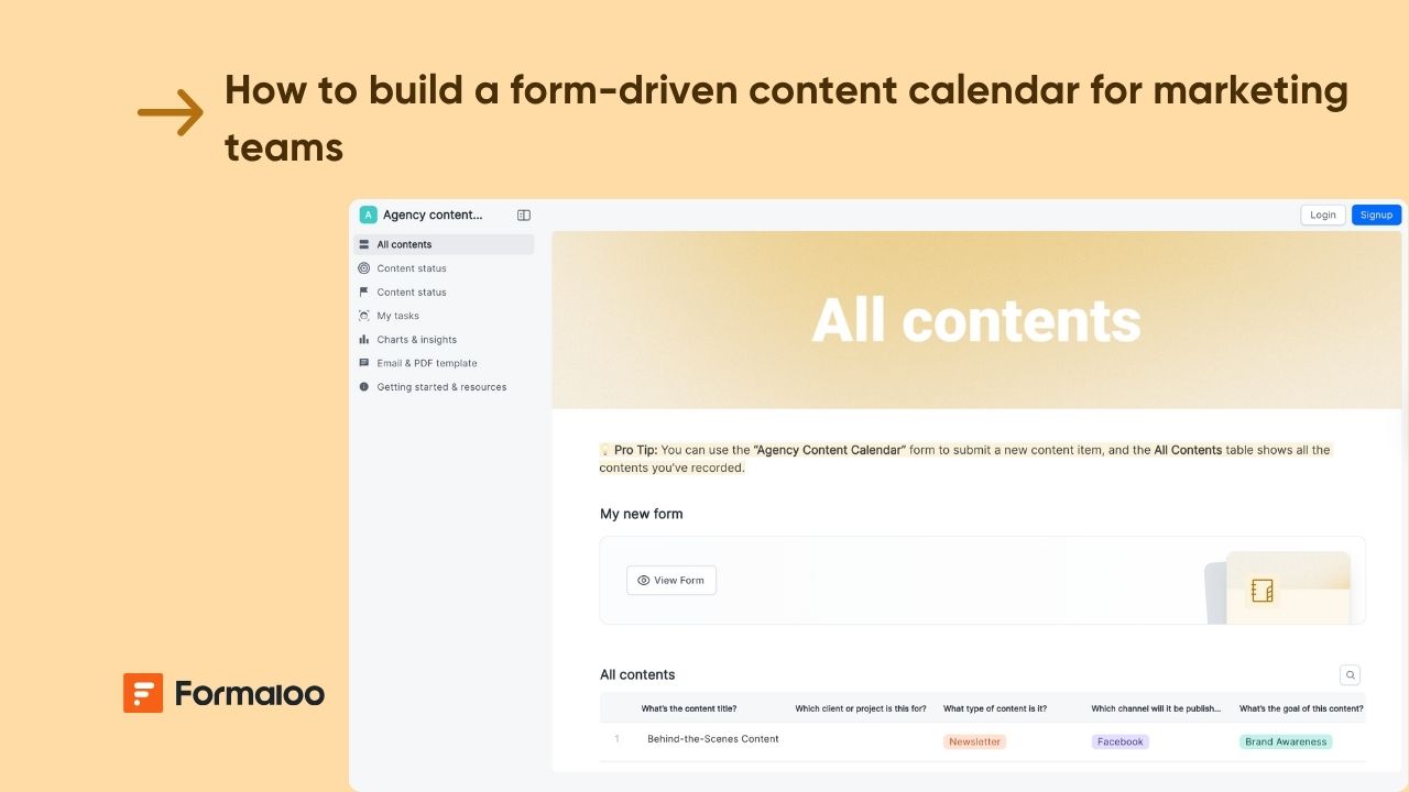 - Link your Content request form (ideas) with a Performance tracking form (results).